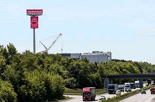 Rechtzeitig zum Ausbau der Autobahn 7 (Achtung Staugefahr!) hat der Mode- und Einrichtungsspezialist Dodenhof in direkter Nachbarschaft ein unübersehbares Zeichen gesetzt: 62 Meter hoch ragt der Werbeturm in den Schleswig-Holsteinischen Himmel. An seiner Spitze bieten mehr als 400 qm Werbefläche einen echten Hingucker für Vorbeirasende, Orientierungssuchende und Shopping-Begeisterte.